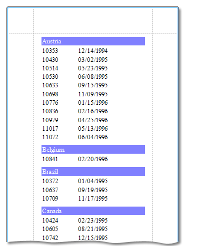 In this example, we will hide the Group Header and Detail bands when a grouping field meets a certain condition. Note that this procedure does not use scripts to accomplish this task.