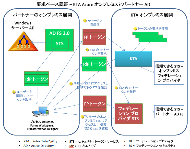 このシナリオでは、Windows サーバー AD FS 2.0 (フェデレーション プロバイダとして) および外部 Windows サーバー AD FS 2.0 (ID プロバイダとして) を使用した TotalAgility オンプレミスについて説明します。