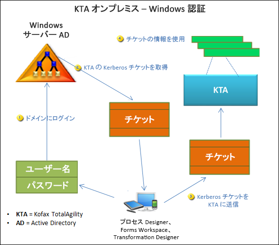 シングル サインオンをサポートしていないため、ユーザーが TotalAgility にログオンする際には、ユーザー名とパスワードを入力する必要がある。