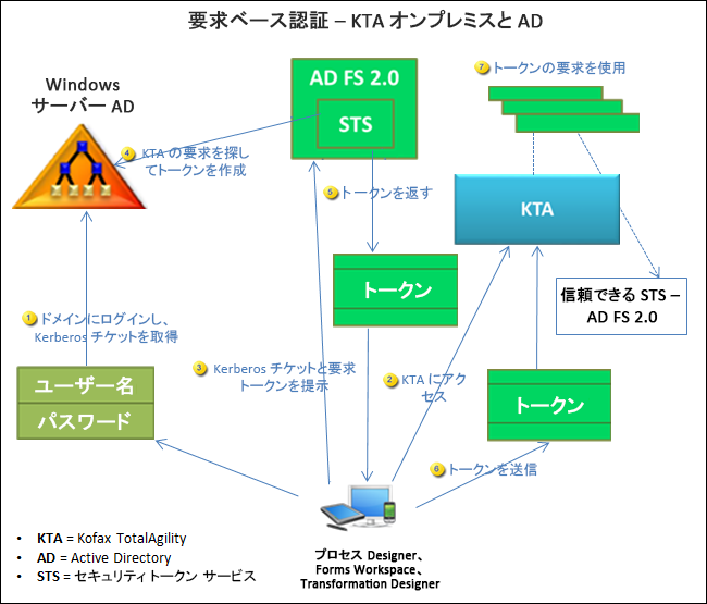 このシナリオでは、ローカルの Windows Server AD FS 2.0 を ID プロバイダとして使用する TotalAgility オンプレミスについて説明します。