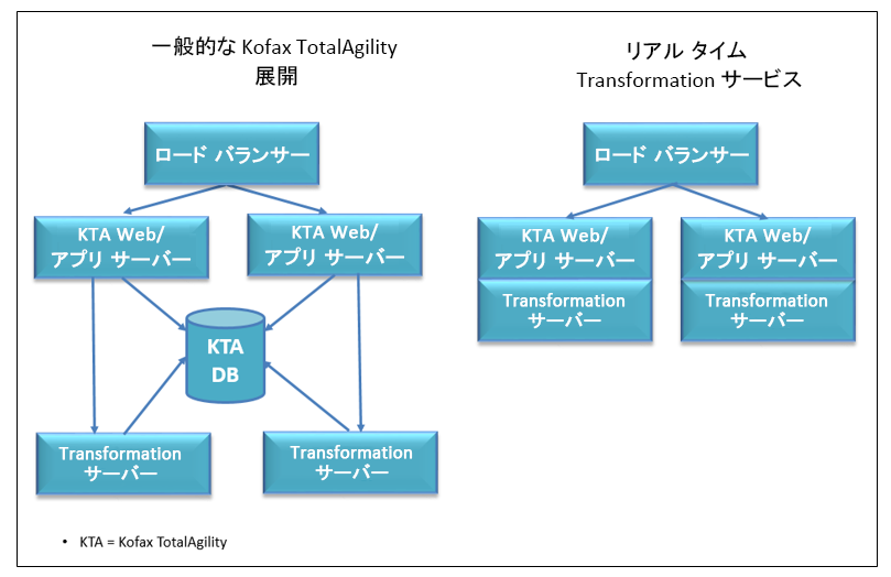 1. 処理のための専用の WebApplication サーバー セットを個別にセットアップします。これらのサーバーはリアルタイム変換にのみ使用され、次の図に示すように既存の TotalAgility 展開データベースを指します。
