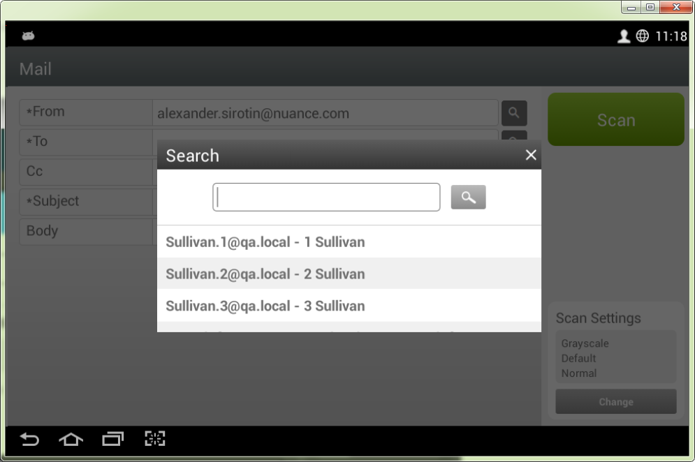 6. Make a selection from the results, and touch OK. The information populates the To or Cc field.