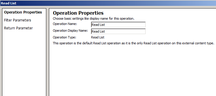 Title Assigned Value Operation Name Read List. Note: This value is required by the component only when Native Services connection mode is used.Operation Display Name Read List The following picture demonstrates an example of the configuration.