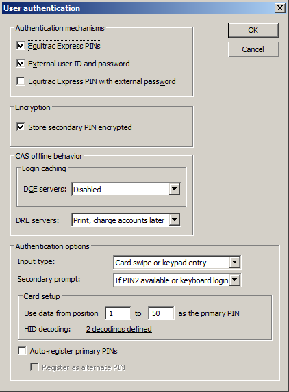 - Equitrac Office or Equitrac Express PINs – Leave selected.
